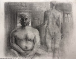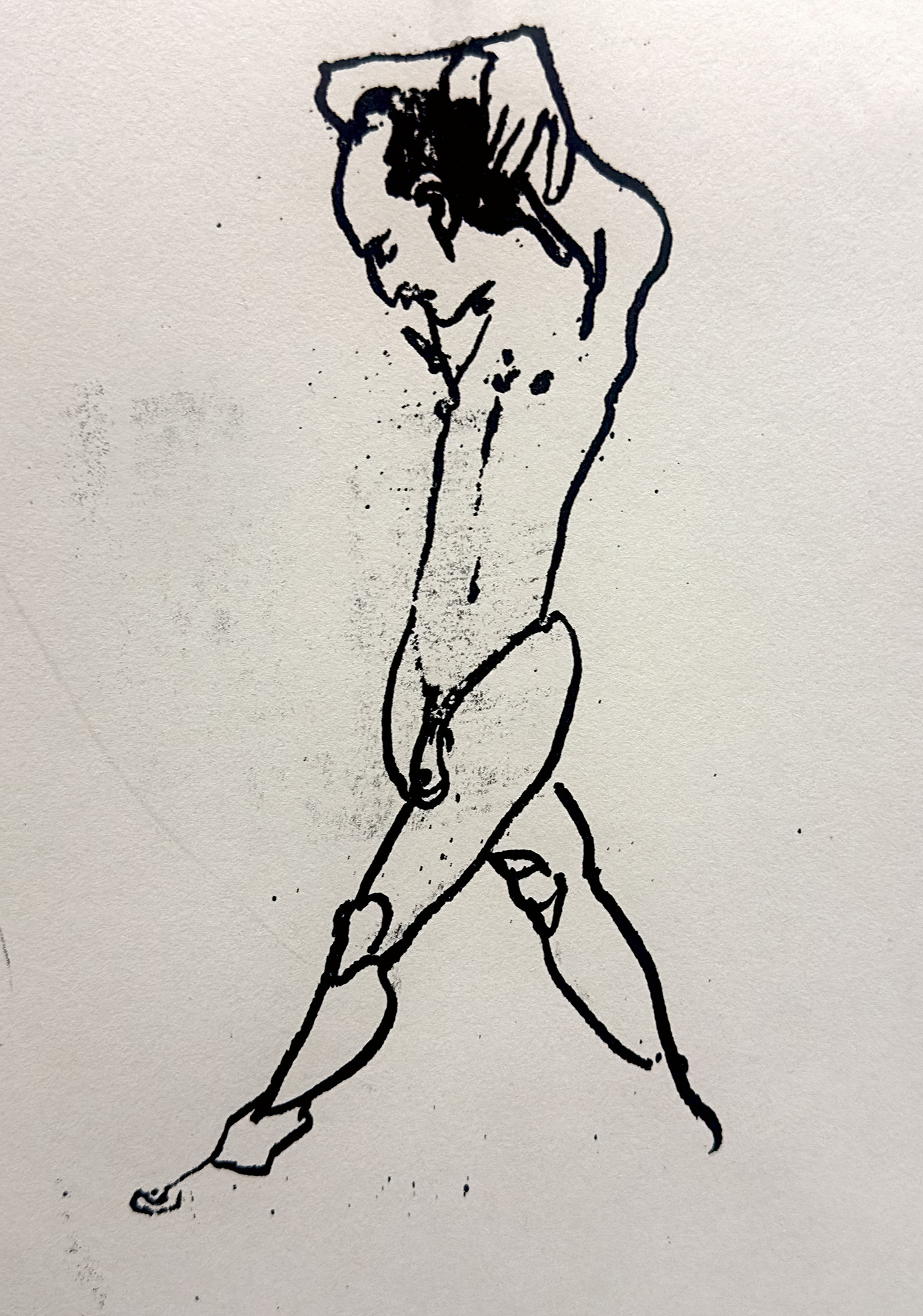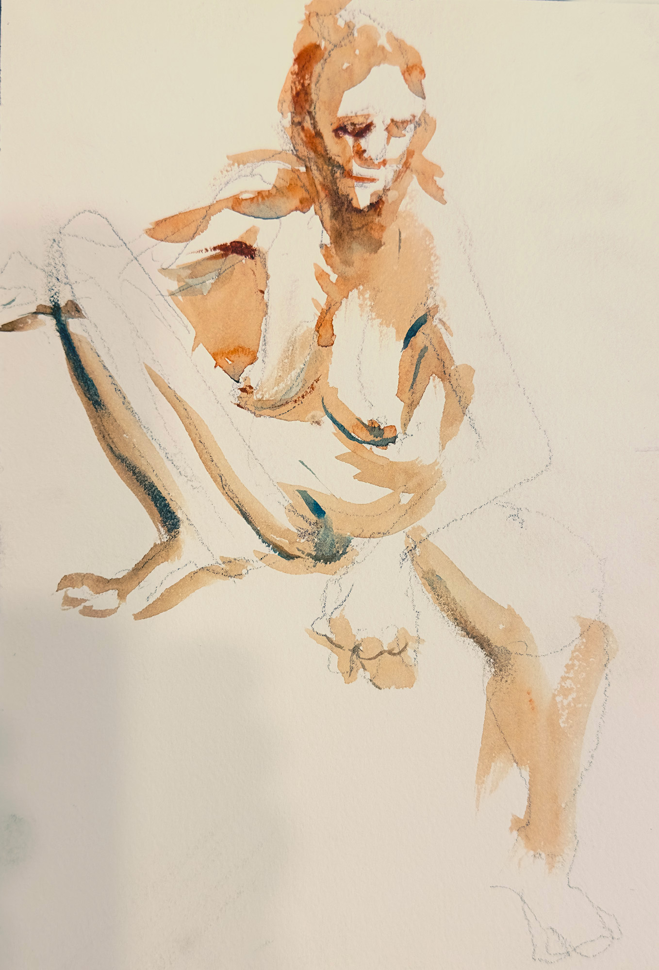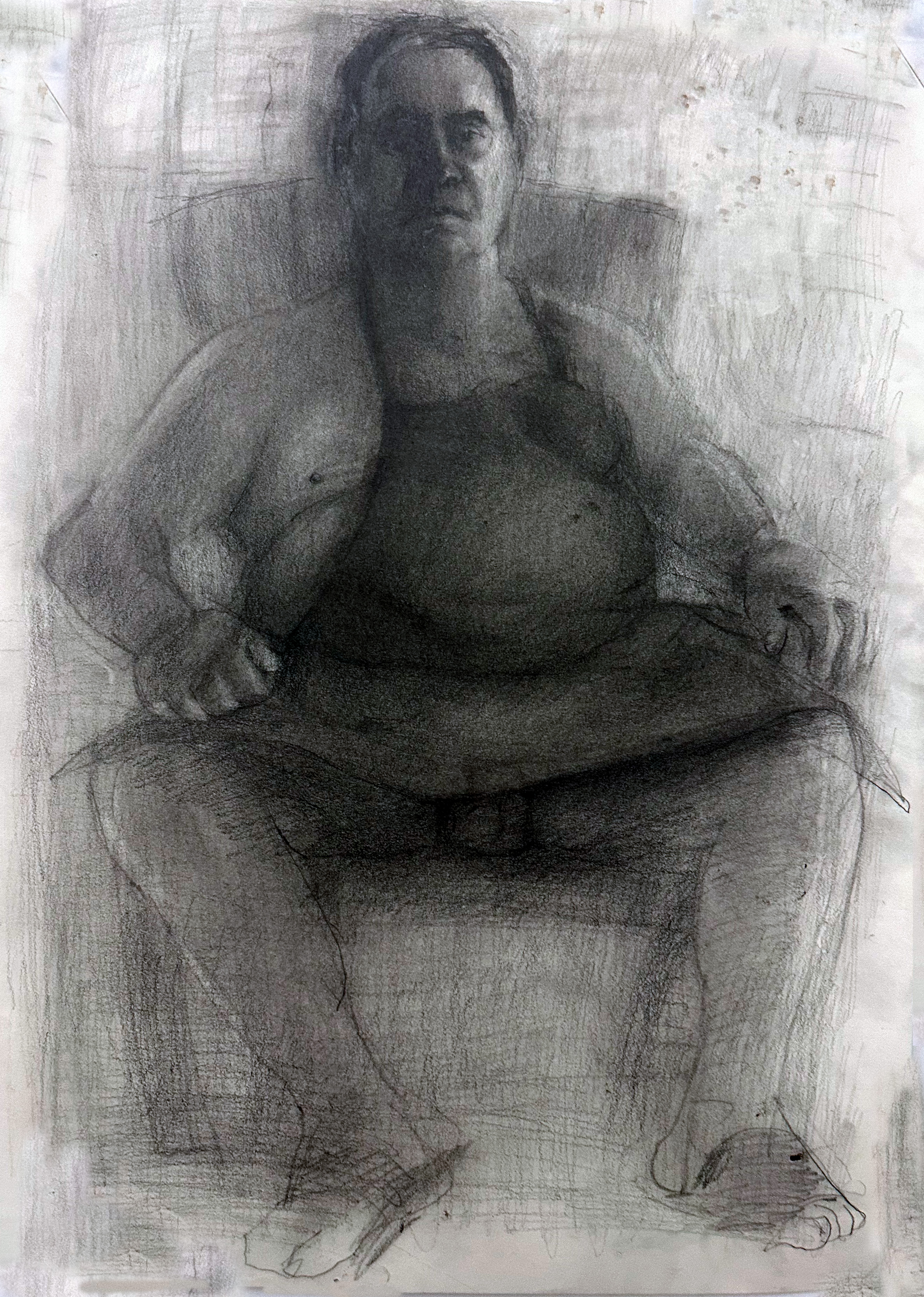 I draw directly from life, asking what it means to be seen — to hold a pose, to endure scrutiny, to resist it. My marks track time and decision. They are as much about process as they are about the subject, yet the subject remains central: someone real, present, and alive in the room with me. Each piece is an observation and a record of attention — a way of staying with the complexity of another person’s body in space..